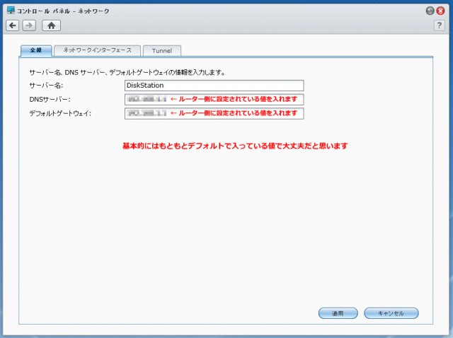 - DS412+自身の設定画面で、インターネットとやり取りをする際に利用するLANポートの固定IPアドレスを設定しておく。