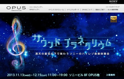 現在、銀座ソニービルの 8F で『サウンドプラネタリウム』というイベントをやっています。(2013/11/13 ~ 2013/12/15 までの期間限定)